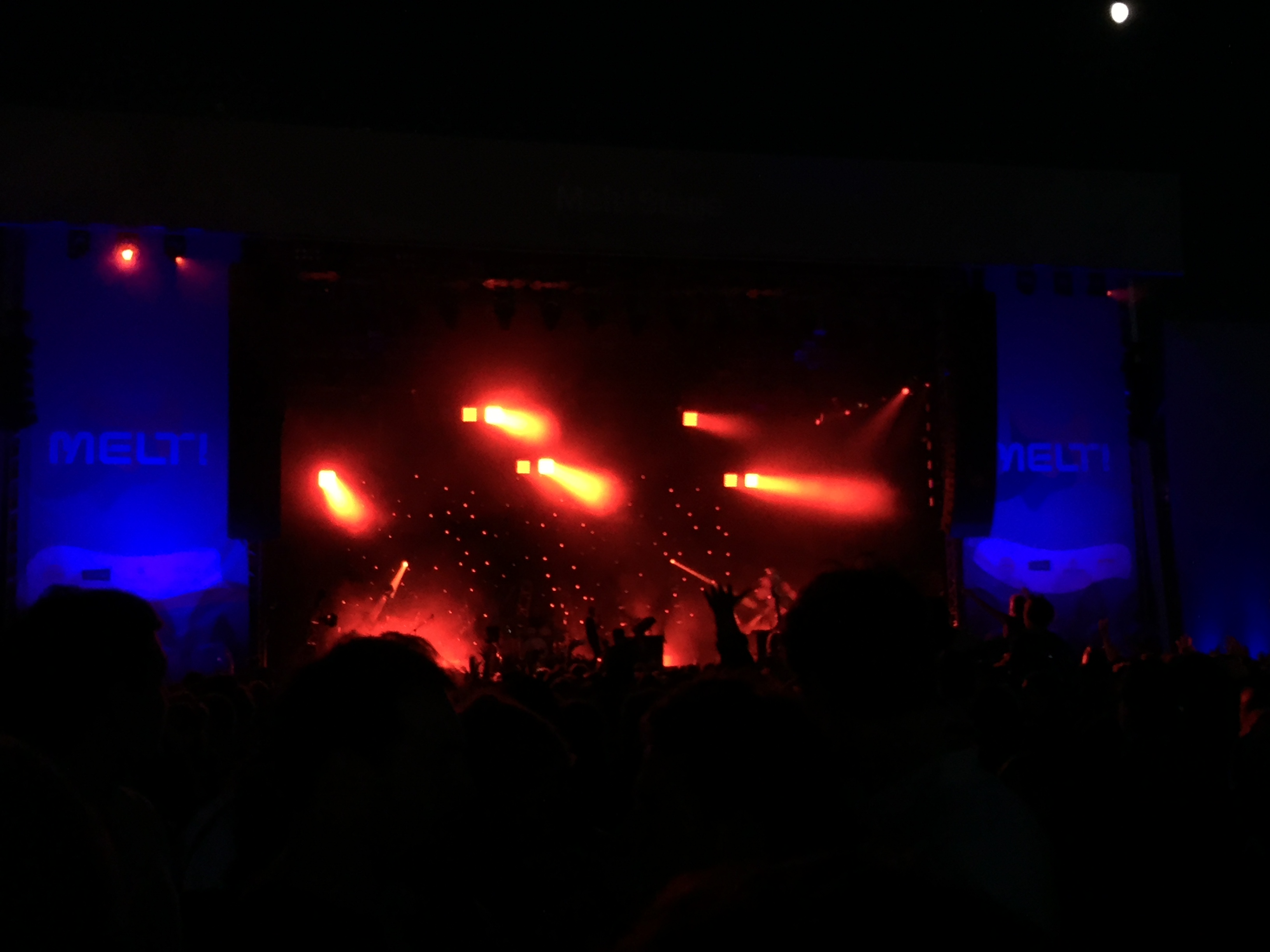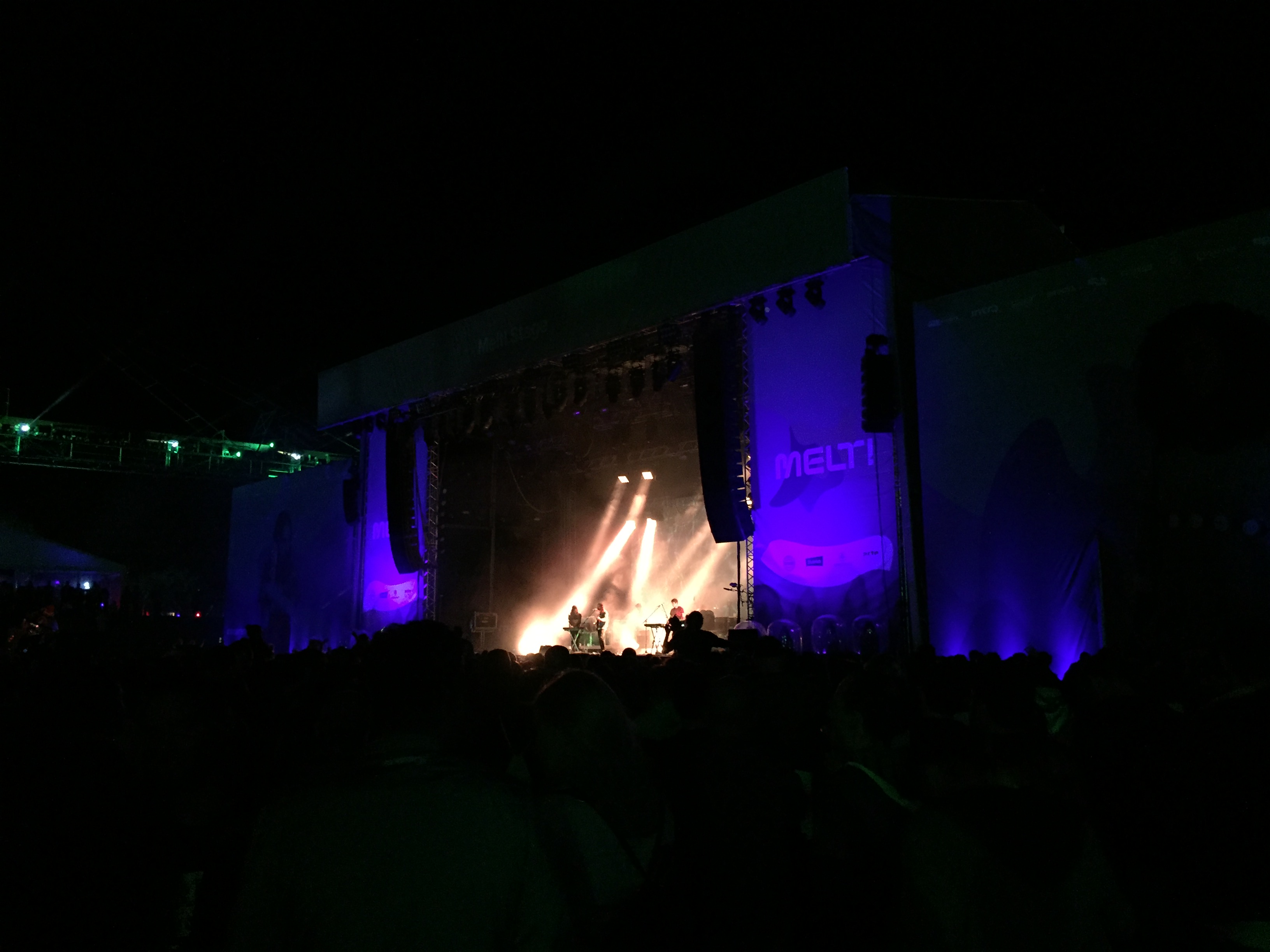 Direkt im Anschluss kamen Tame Impala aus Australien mit einer Mischung aus Psychedelic Rock, Indie und Elektro und verzückten die Fans mit Songs wie Let It Happen, The Less I Know The Better und Elephant. Natürlich dürfte auch die Mark Ronson Nummer Daffodils, die Ronson zusammen mit Tame Impala Frontsänger Kevin Parker aufnahm, nicht fehlen. So überraschte gerade dieser Song viele, die Tame Impala hier das erste Mal kennenlernten. Als Abschluss des ersten Festivaltages folgte auf der MELT! Selektor Stage das Berliner DJ Duo Mdslktr. Die harten Bässe und die von Gebäuden umgebene Bühne sorgten dafür, dass sich der komplette Sound nur in Richtung des Publikums entladen konnte. Was dazu führte, dass der komplette Oberkörper vibrierte.