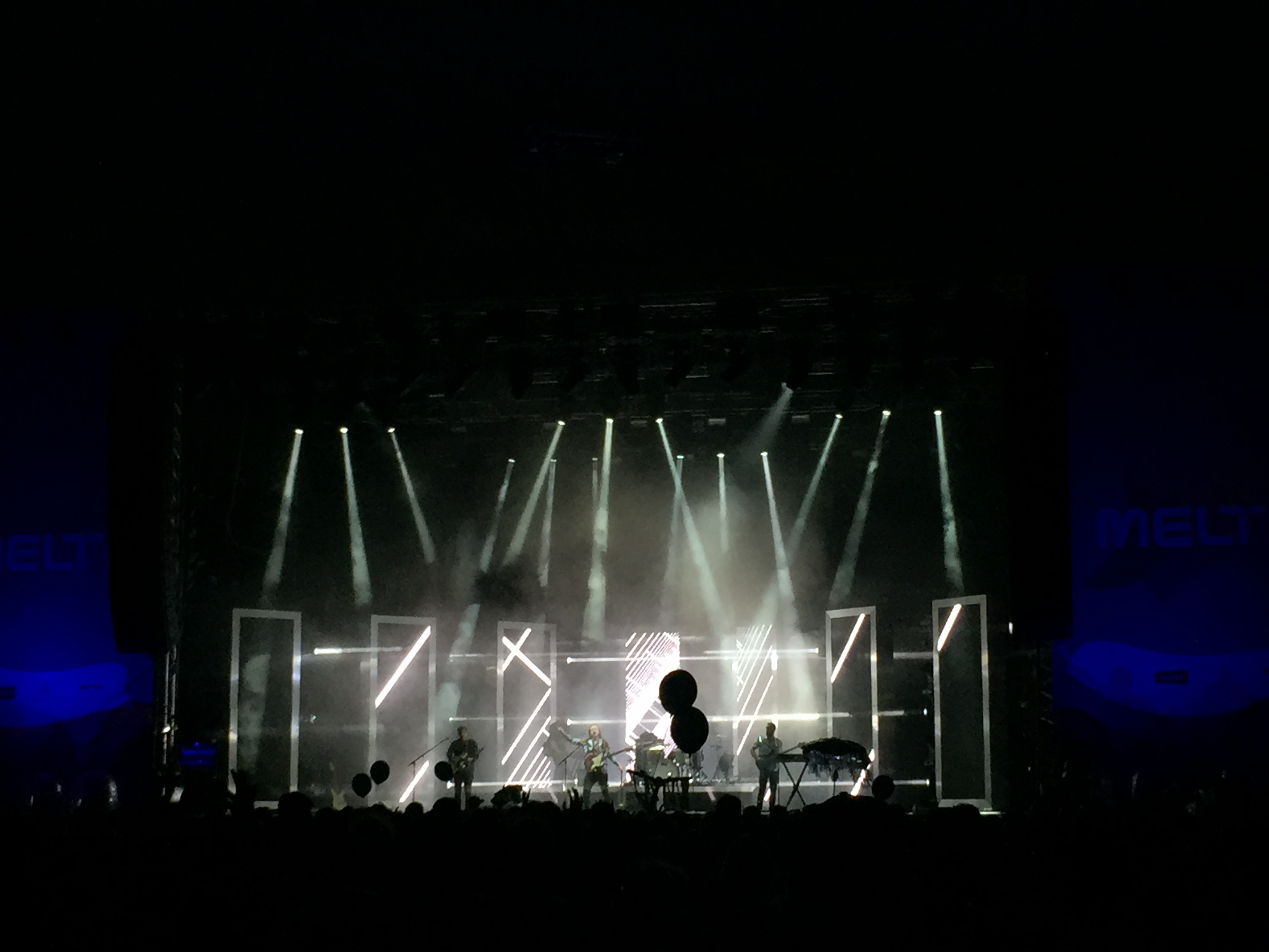 Keine dreiviertel Stunde später ging es bereits auf der MELT! Stage mit Two Door Cinema Club los. Was hier zu erwarten war, wurde bei weitem übertroffen. Satte 19 Songs spielten die Nordiren und vereinten so alle Hits ihrer beiden, bereits veröffentlichten, Alben Tourist History und Beacon und ihrem, im Oktober erscheinenden Album Gameshow. So dauerte es gerade einmal einen Song, bis das Publikum direkt vor der Bühne anfing ekstatisch zu tanzen. So ging es über etwas mehr als eine Stunde durch Songs wie Sleep Alone, Undercover Martyn, Gameshow, Are We Ready (Wreck), Sun, I Can Talk, Something Good Can Work und Someday. Beendet hatten das Trio den Auftritt mit What You Know – einem letzten Aufbäumen der Masse um sich bei der Band für den Auftritt zu bedanken. Da wurde gesprungen und gepogt und ganz viel gejubelt und am Ende tief durchgeatmet.