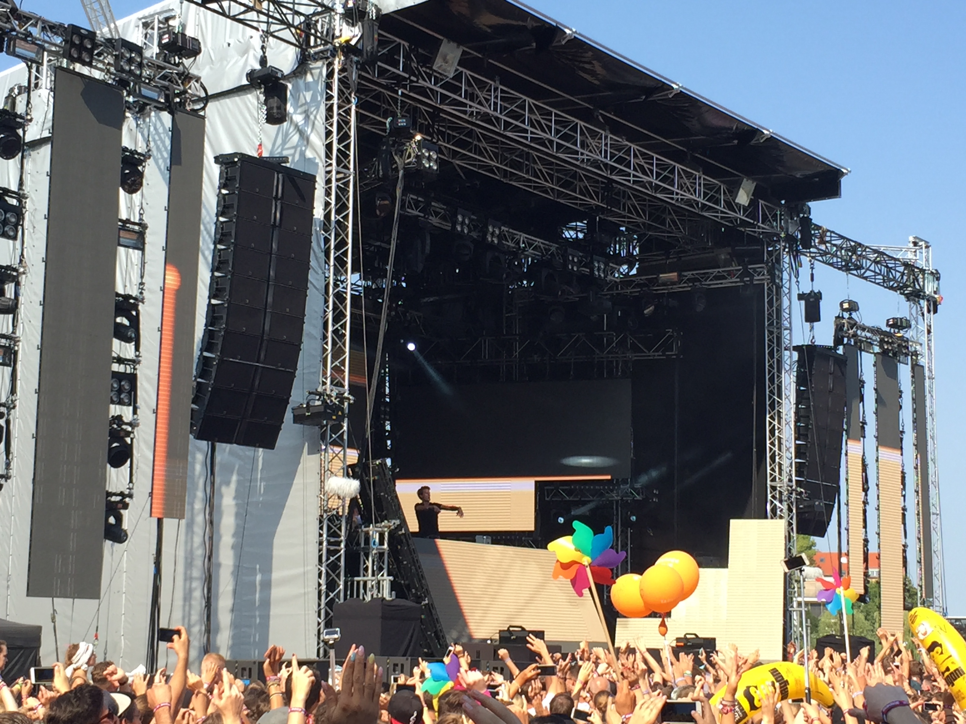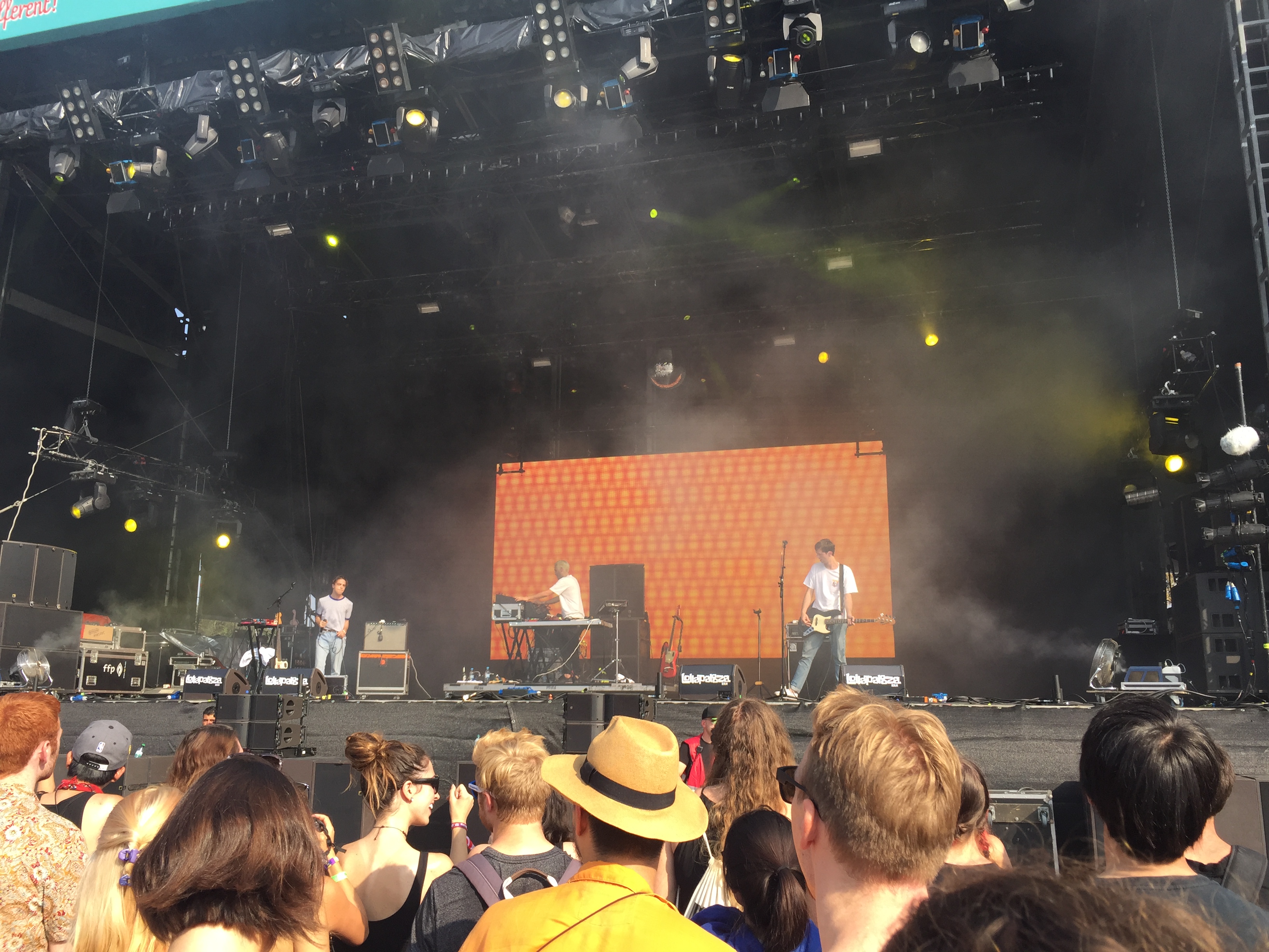 Der Samstag begann mit dem Auftritt der amerikanischen Violinistin Lindsey Stirling. Bekannt für ihren Mix aus klassischer Musik und Dubstep schaffte es Stirling erstaunlich schnell eine große Menge an Zuschauern vor die Mainstage 2 zu bewegen. Da wurden ihre aktuellen Singles wie Prism und Something Wild genauso gespielt, wie ihre bekanntesten Songs Crystallize und Shatter Me. Nach knapp einer Stunde war der Zauber der Violine vorbei und ließ sichtbar viele fragende Gesichter zurück. Konnten einige doch nicht glauben, dass sich klassische Violinenmusik so gut mit Dubstep verträgt und dieser Mix sogar tanzbar war. Während auf der Mainstage 1 die Briten von Catfish And The Bottleman mit ihren großen Hits Homesick und Kathleen begannen und auf der Perry’s Stage der norwegische DJ Matoma mit sommerlichen Tropical House Remixen für Open-Air-Stimmung sorgte, drehte ein kleiner Underdog auf der Alternative Stage so richtig auf. Mit Songs wie What Love, Four, Give Me A Reason oder OB1 zeigten die Australier von Jagwar Ma, was für einen fantastischen Psychedelic Rock die drei drauf haben. Immer ein wenig an der Grenze des künstlerischen Ausprobierens zeigte vor allem Sänger Gabriel Winterfield mit seiner Spielfreude, dass sich die Band gerne auch mal einfach der Musik hingibt und so ein Song schnell mal 6-7 Minuten lang werden kann. Bewundernswert hierbei war, dass trotz der langen Songs nie Langeweile aufkam.