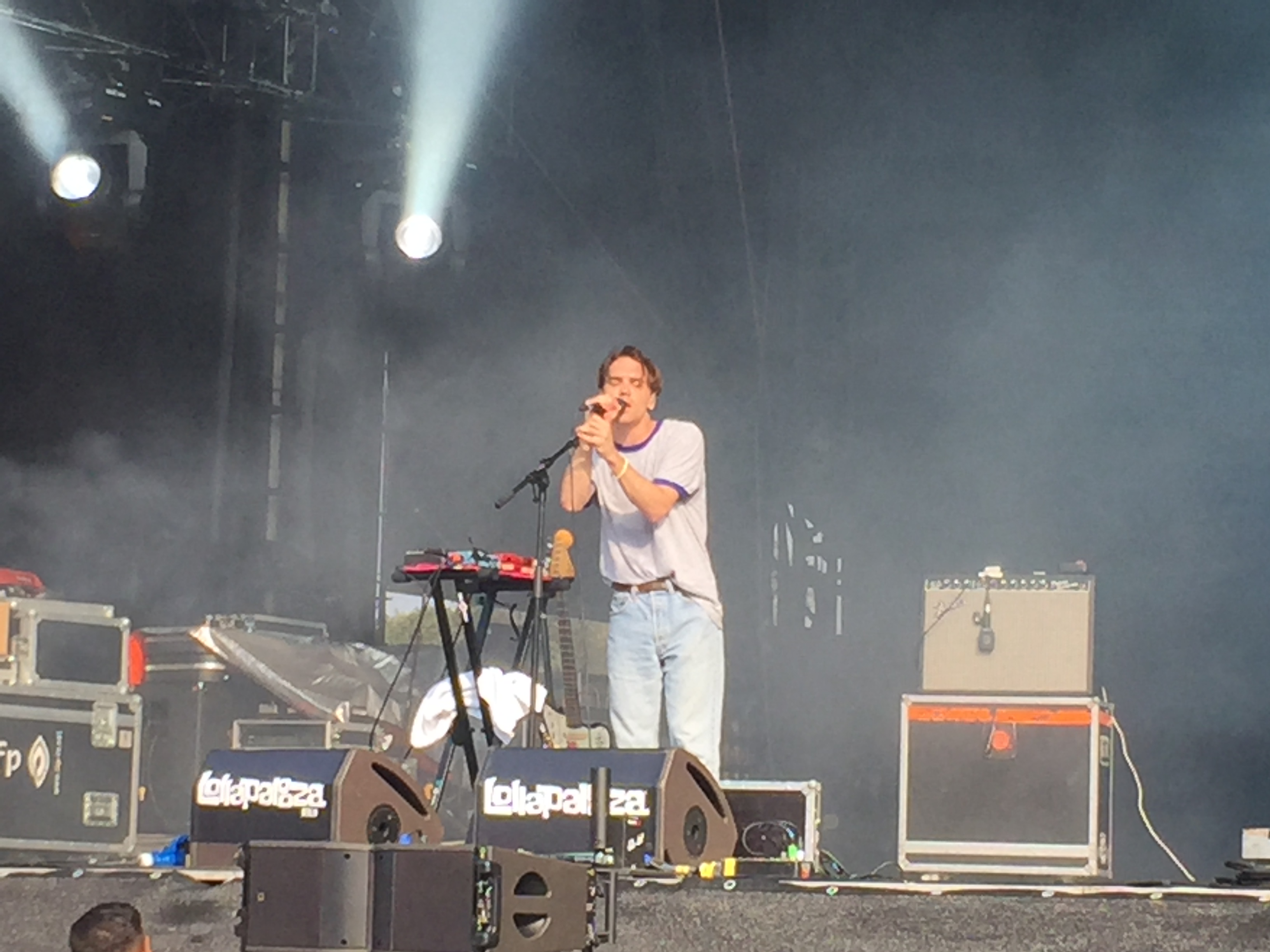Von den Kaiser Chiefs in Richtung der Mainstages aufgemacht, empfing Max Herre alle dazugestoßenen mit Songs wie Wolke 7 oder Esperanto. Seine unglaublich entspannte Art und sein lässiger Gesang passten wunderbar zu den 30°C und Sonnenschein. Auf der Bühne unterstützt hatten ihn Joy Denalane, Philipp Poisel, Afrob und Megaloh. Hier sang sich Philipp Poisel dann bereits für seinen Auftritt auf der Mainstage 1 warm, denn direkt nach Herre ging es für ihn dort weiter. Hatte er in den letzte zwei Jahren gerade mal fünf Auftritte absolviert, sollte das Lollapalooza als großes Comeback dienen. Schließlich kam eine Woche später seine neue Single Erklär Mir Die Liebe raus. Doch was Poisel hier auf der Bühne ablieferte, ließ wohl die größten Fans sprachlos zurück. Denn es flossen Tränen. Nicht etwa beim Publikum, sondern bei Poisel selbst. Wer bereits Auftritte des Baden-Württembergers genießen konnte weiß, dass Poisel einen verletzbaren Charakter hat. Mit seinen Texten, die tief berühren können und seiner zurückhaltenden Art des Vortragens zeigt er seit Beginn seiner Karriere, dass er kein Rampenlichtkünstler ist. Auf dem Lollapalooza allerdings, begann Poisel bei seinen Songs dann tatsächlich zu weinen. Und genau dieser Moment war es, der Menschen, die nicht zu Poisels Fans zählen, die Gänsehaut auf die Arme brachte. Obwohl das Konzert von Arte Concerts mitgeschnitten wurde, gibt es diesen Teil leider nirgends im Netz zu finden. Und das, obwohl genau dieser Auftritt wohl der authentischste des ganzen Festivals sein sollte. Denn was kann es wertvolleres geben, als ein Künstler, der seine Texte fühlt und tatsächlich zu ihnen eine Verbindung aufweisen kann? So sang das Publikum, wenn Poisel die Stimme versagte, und ging mit allen Songs des 31 Jährigen mit.