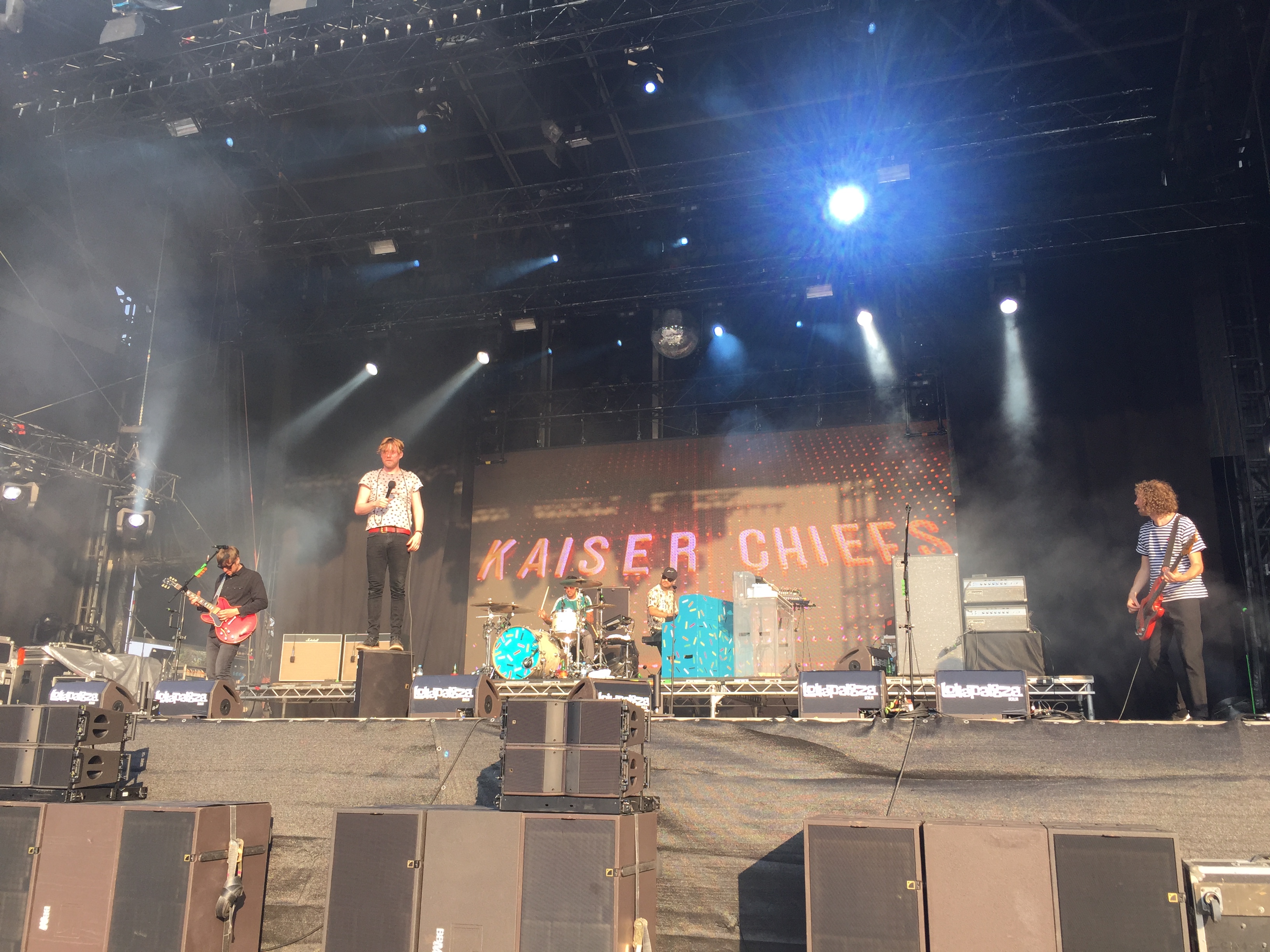 Keine halbe Stunde nach Jagwar Ma kamen die britischen Indie-Urgesteine auf die Bühne. Auf einer überdimensionalen LED-Wand im Hintergrund wurden in großen Lettern die Kaiser Chiefs angekündigt, welche die Indie-Bewegung der 2000er wie kaum eine andere Band mitbestimmt haben und mit modernen Klassikern wie Ruby, I Predict A Riot, Oh My God oder Never Miss A Beat für die Dancefloorkiller sorgten. Doch nachdem ihr 2011er Album The Future Is Midieval sehr deutlich die Erwartungen verfehlte und auch das nachfolgende Album Education, Education, Education & War, außer in Großbritannien, eher verhalten aufgenommen wurde, hatten es die fünf Briten in letzter Zeit recht schwer.