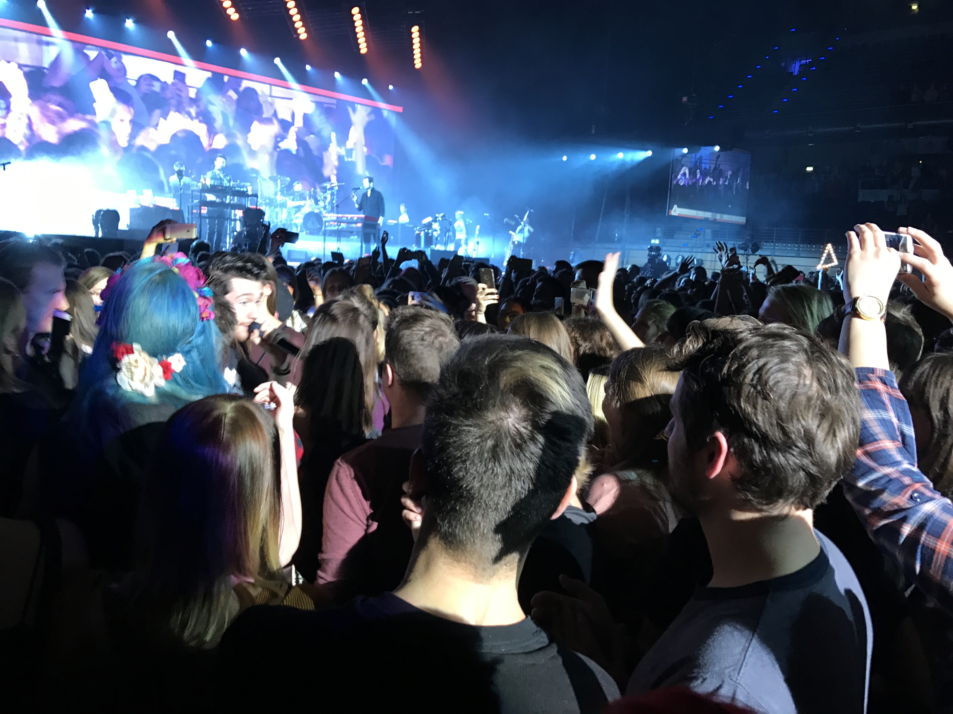 Nach Blame kam mit Of The Night nicht nur einer ihrer erfolgreichsten Songs, sondern trieb es Smith wieder in die Menge um den Song auf dem Mischpult in der Mitte der Halle zu präsentieren. Mit Fake It, Weight Of Living Part II, Glory und Good Grief kamen vorwiegend Songs aus dem neuen Album vor ehe sich die Band von der Bühne verabschiedete.