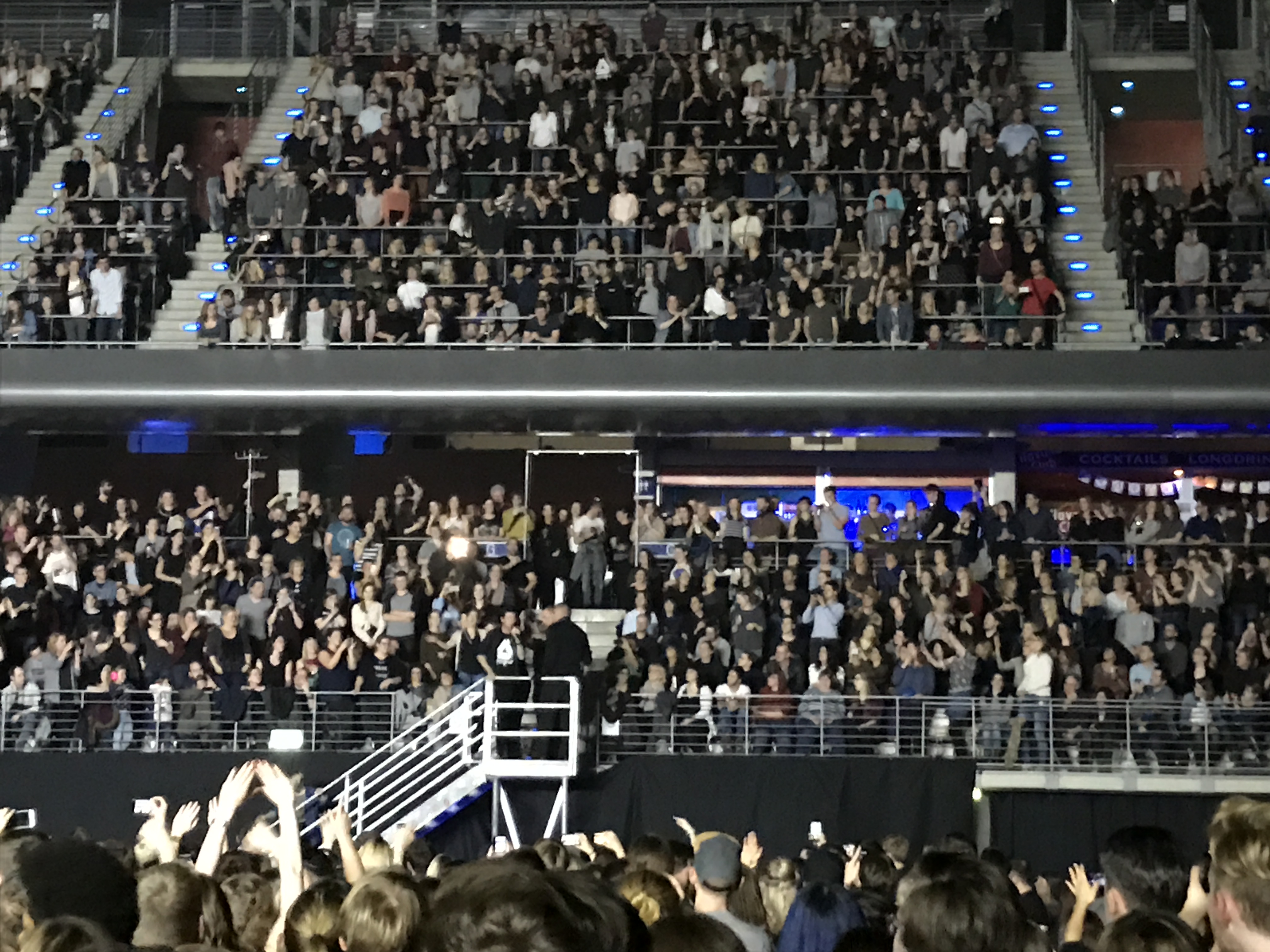 Nach langem Applaus setzte schließlich wieder die Musik ein und schwenkten die Scheinwerfer zum oberen Seitenrang, wo die Band stand und Two Evils einstimmte. Mit eine Stille in der Halle schritt Smith die Treppen zur Brüstung hinab und sang zwischen ein paar Fans den dunkel klingenden Song. Anschließend begab sich die Band mit einem langen Intro von Icarus wieder auf die Hauptbühne und legte nochmal richtig los. 21 Songs später sollte dann das Konzert vorbei sein. Allerdings durfte hier natürlich Pompeii nicht fehlen, mit dem für die Band vor einigen Jahren alles begann. Mit dazu holte Bastille sich Rationale und alle Background Sänger, die den Song mit ihren Instrumenten und einem Chorgesang unterstützen. Hatte Smith das Publikum eingangs noch scherzhaft aufgefordert, sollten sie den Song kennen, mitzusingen, konnte man ihn am Ende selbst kaum noch hören.