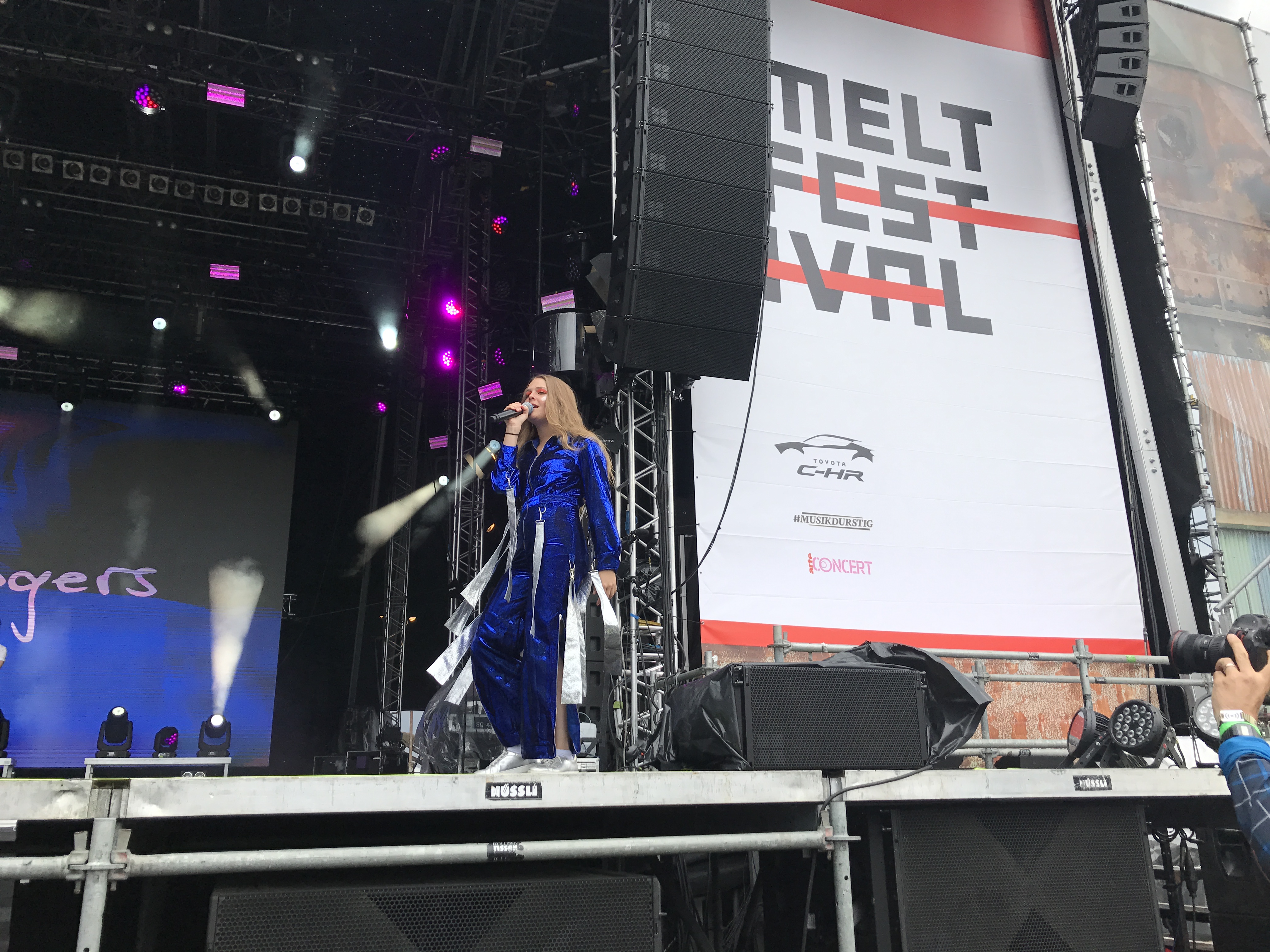 Diesen Juli gaben sich Die Antwoord, The Kills, Hercules & Love Affair und M.I.A. die Klinke in die Hand und brachten Ferropolis zum Beben. Diese Beben sollte am Freitag mit der Neuentdeckung Maggie Rogers beginnen. Hat sie während ihres Musikstudiums die Bekanntschaft mit Pharell Williams gemacht, sorgte das dazugehörige Video, weltweit für einen Hype. Mit ihrer unvergleichbar, sympathischen Art, die einerseits verträumt und andererseits kindlich wirkt, bezauberte sie live das ganze Publikum. Mit den Songs Color Song und Split Stones tanzt sie sich völlig frei, um nicht unerwähnt zu lassen, dass es das erste Mal sei, dass sie auf einer Hauptbühne spiele. Ihr Charakter ist es allemal Wert genau auf einer solchen Bühne zu stehen – füllte sie doch die Bühne und den Publikumsbereich vollends aus. Speziell bei Split Stones war das Publikum gefesselt und feierte seinen (noch) heimlichen Star. Mit Dog Years und Resonant Body kam dann sogar der Spirit einer ganz großen Künstlerin ans Licht – weiss Rogers doch ganz genau, wie sie einen einzigartigen Moment erzeugen kann, der für die Fans genauso, wie auch für sie einen Moment der Entfernung vom Umfeld darstellt. Schwelgerisch, hymnenhaft und eingekehrt klang Dog Years und schallte über das Festivalgelände, um Festivalgänger, die vorher noch nichts von der 23-jährigen Amerikanerin gehört hatten, anzuziehen. Mit Resonant Body hatte sie schliesslich sogar einen ihrer ältesten Songs aus der 2014 veröffentlichten EP Blood Ballet dabei.