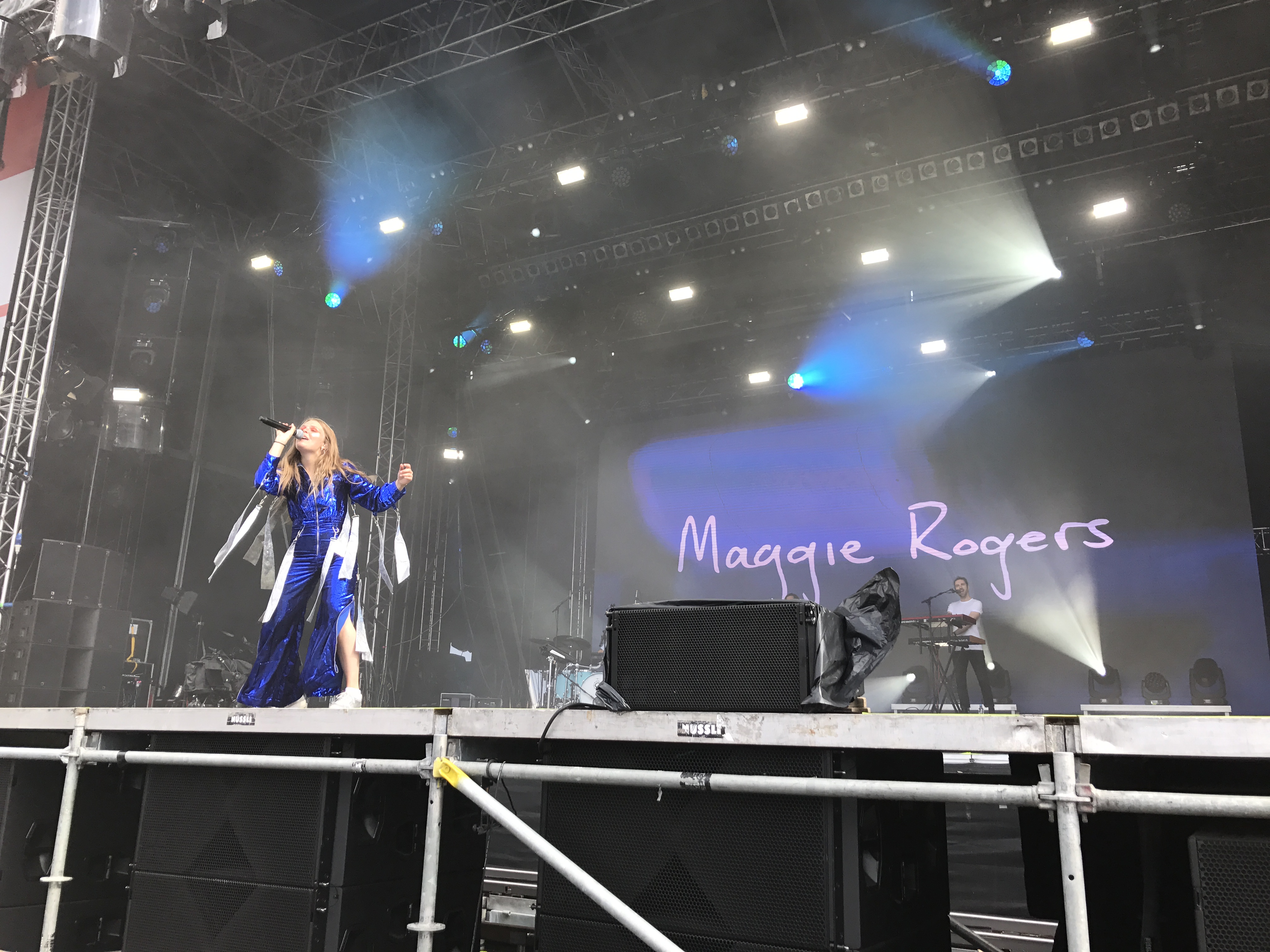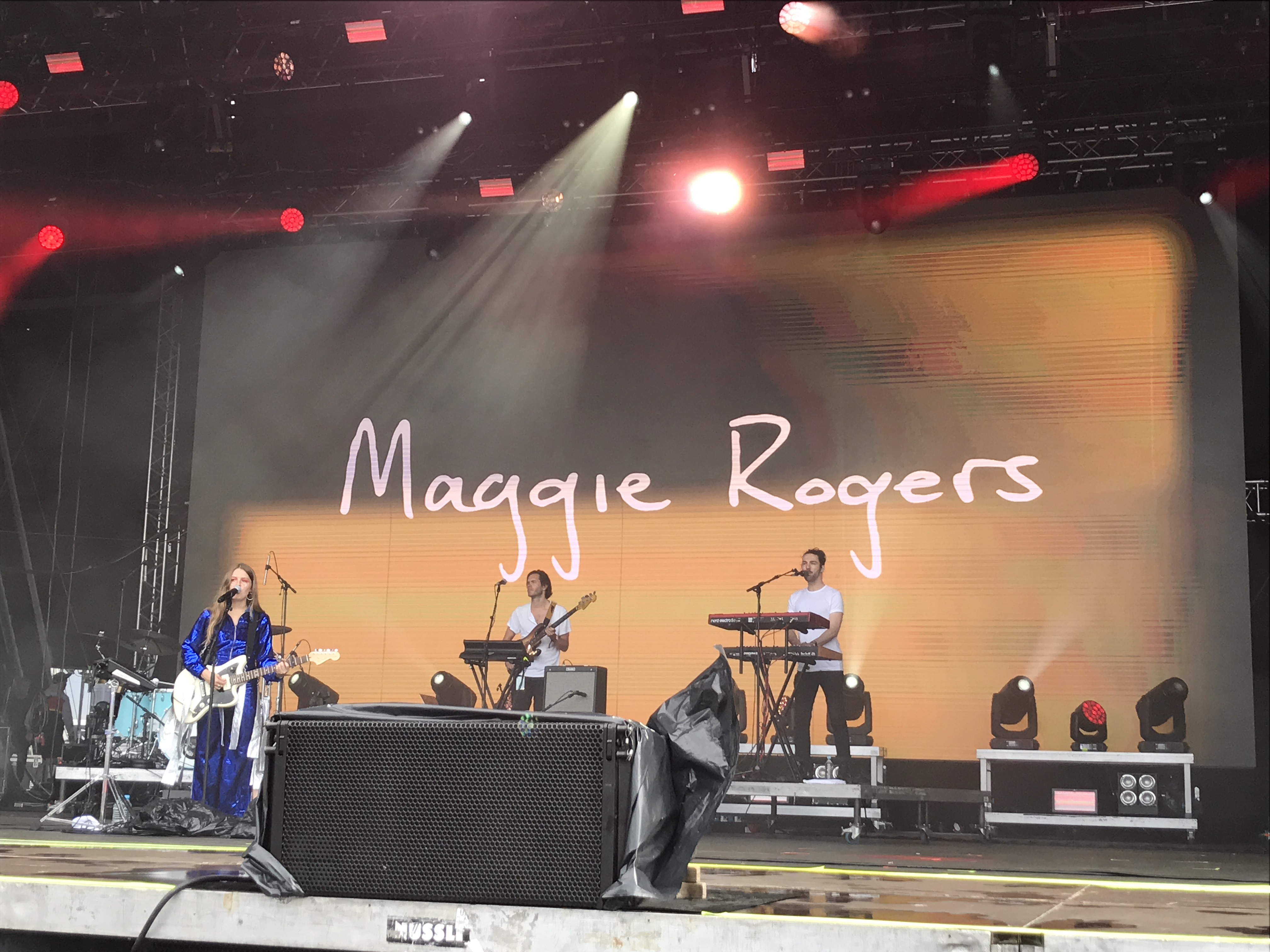 Es folgten Say It, Hashtag und Little Joys. Mit Better aus ihrer aktuellen EP Now That the Light Is Fading und dem Cover des Neil Young Songs Harvest Moon hatte sie schließlich auch einen kurzen, ruhigen Block performt – wobei Rogers Harvest Moon mit einem schnellen, elektronischen Beat unterlegte. War die Bühne so aufgebaut, dass es im vorderen Bereich einen Kameragraben gab, sprang Rogers immer wieder zwischen der Hauptbühne und der vorgelagerten Bühne hin und her und musterte das ganze Konzert über das Publikum. So zogen ihre Augen über die Köpfe und suchte immer wieder Augenkontakt mit dem Publikum. Als schließlich On + Off und Alaska kamen, gab es auch vor der Bühne kein Halt mehr und das Publikum tanzte zu einer lebensfrohen Maggie Rogers. Dass diese beiden Songs eine der Stärksten ihrer bisherigen Karriere sind, zeigte sich nicht zuletzt an einer selbstsicheren, fröhlichen Sängerin, die einem Publikum gegenüberstand, dass einfach nur den Moment genoß. Und so war es auch kein Zufall, das Rogers als letzten Song ein Cover der Band The Sundays spielte, dass den Titel Here’s Where The Story Ends trug. Maggie Rogers ist fantastisch, sympathisch und überzeugt auf ganzer Linie und sollte auf jeder Konzertliste stehen.