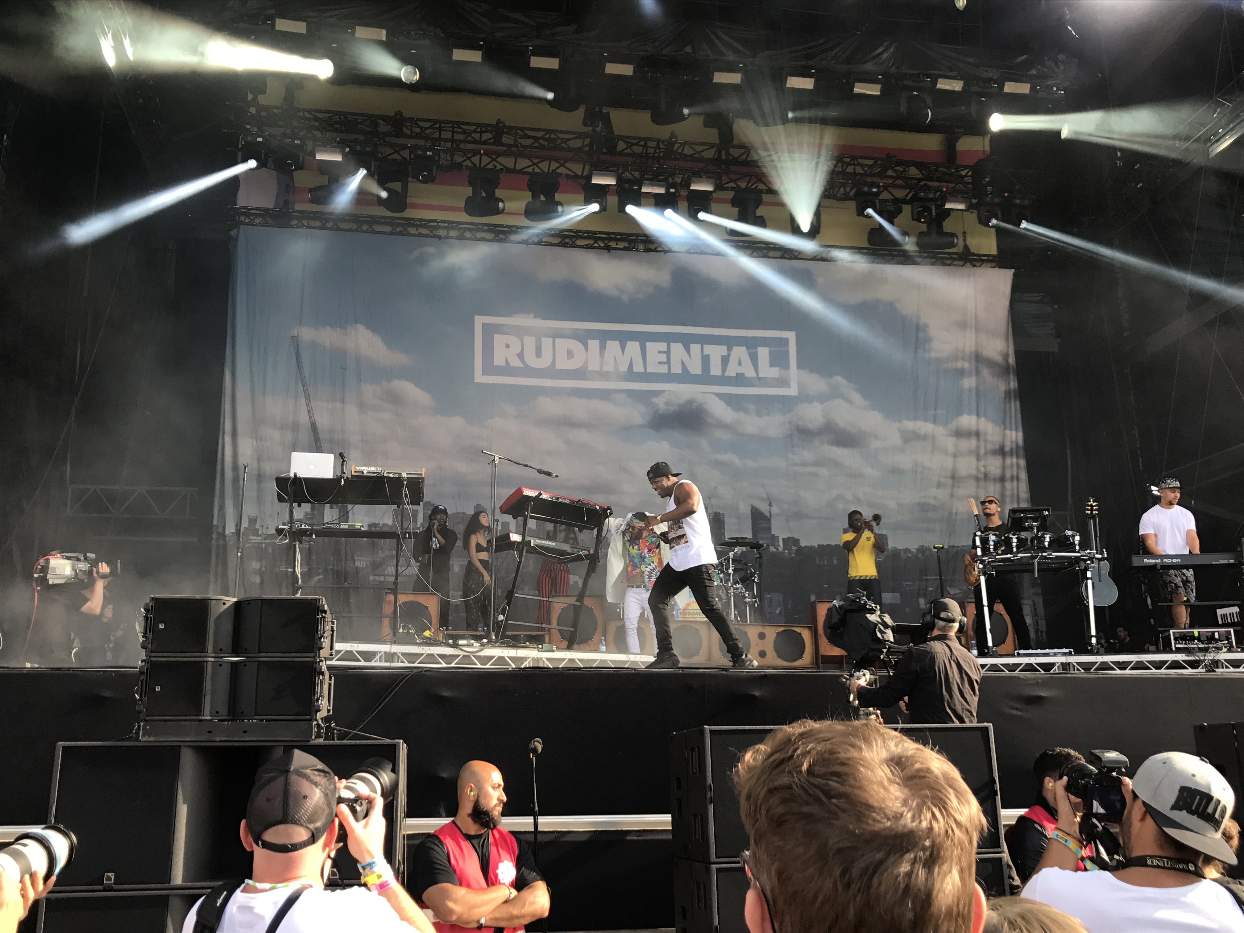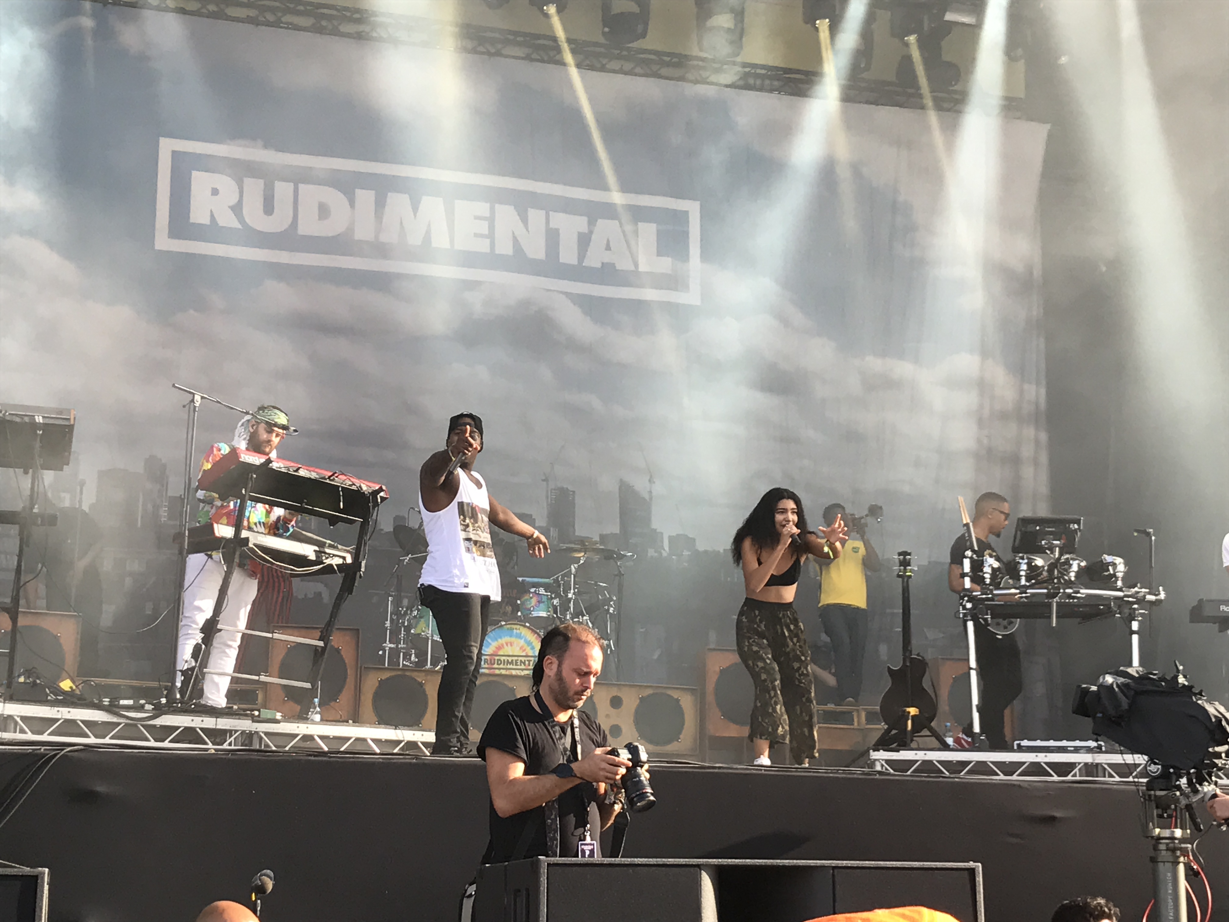 Auf der Mainstage 2 wurde indes alles für den Auftritt der britischen Combo Rudimental vorbereitet. Mit einem Mix aus Hip-Hop, House, Pop und Drum’n’Bass war die Band in den letzten fünf Jahren zu einer ganz großen Nummer im britischen Musikbusiness geworden. Dies zeigte sich auch an diesem Sonntag auf der Bühne. Haben Rudimental hauptsächlich Gastsänger auf ihren Songs, war auch hier, mit Anne-Marie, eine Sängerin dabei, die gerade in Großbritannien ihren Durchbruch feierte. Mit Feel The Love, Waiting All Night, Not Giving In, Bloodstream, Rumour Mill, Lay It All On Me und Sun Comes Up hatte das Quartett alle großen Songs im Gepäck und überzeugte mit einer energiegeladenen Show die vor allem durch das Anheizen von Leon Rolle, alias DJ Locksmith immer wieder befeuert wurde. Durch Raps, animieren zum Springen, Klatschen und Schreien gab es immer wieder Wellen von Euphorie und keine Zeit für eine Pause. Was Rudimental bereits 2013 auf dem MELT! Festival bewiesen, wiederholten sie dieses Jahr auf der Lollapalooza Bühne – nämlich, dass sie eine unglaublich starke Liveband sind und mit ihnen jedes Konzert zur Party wird.