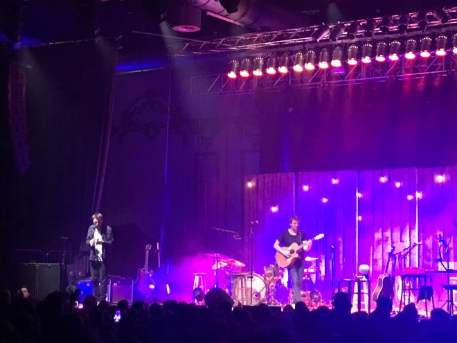 An diesem kalten Novemberabend rief er nun schließlich seine Fans auf, in die Konzerthalle am Neuköllner Hermannplatz zu kommen. War die Halle zum bersten voll und ausverkauft, folgten diesem Aufruf anscheinend viele seiner Fans. Pünktlich wie ein Maurer betrat der Sänger um 20:30 Uhr – ohne Vorband – die Bühne und begann mit den ersten Songs Morgen Ist Der Winter Vorbei, Es Ist Schon Spät und Neue Luft. Dabei knisterte es still in der Halle und klangen die Gitarrensaiten voluminös und warm. Hiernach begrüßte er das Berliner Publikum und ließ sympathisch von der Stange, dass er ja doch immer etwas aufgeregt sei, das Publikum hier ihn aber so herzlich empfangen habe, dass dieses Gefühl schon fast verflogen sei.