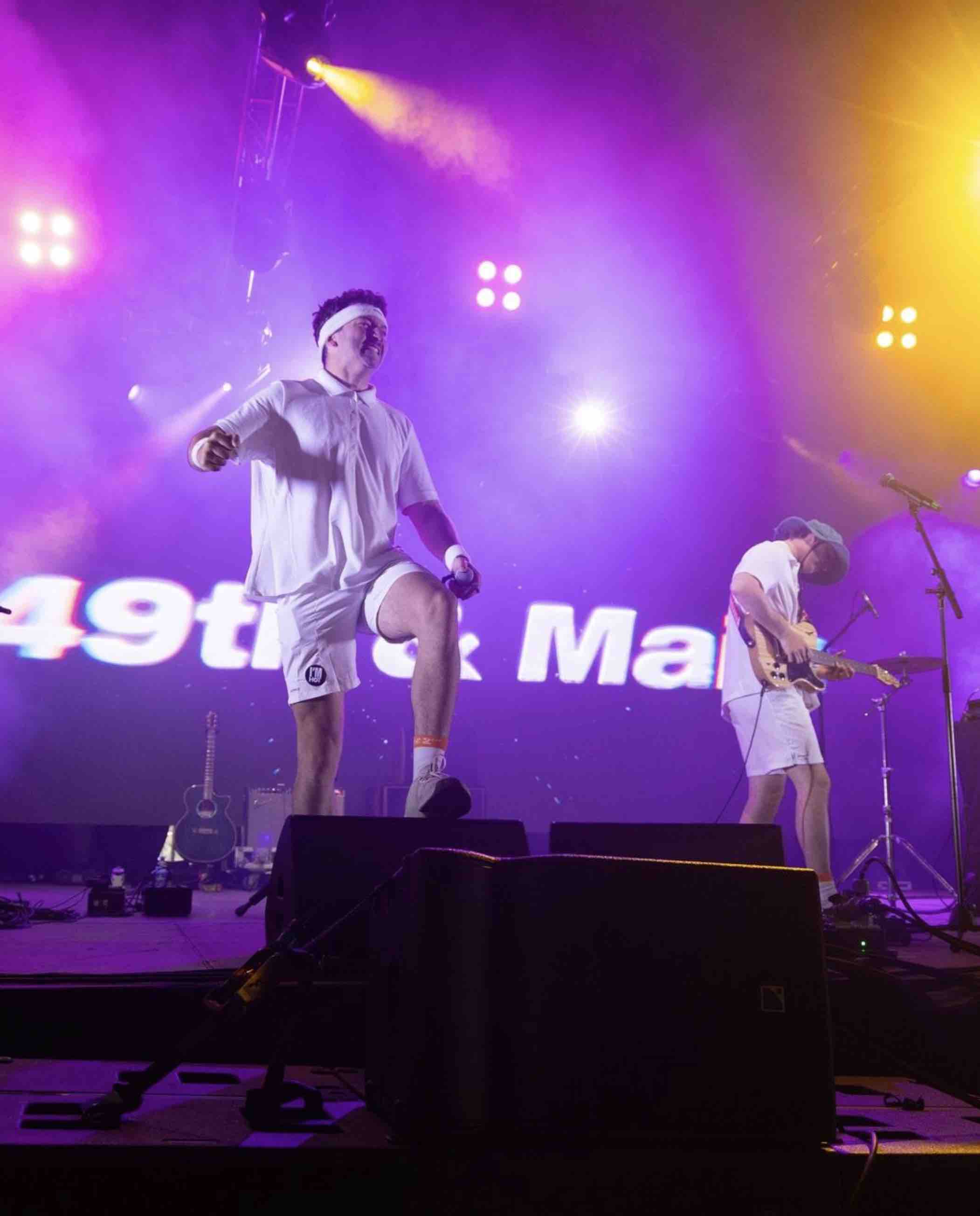 Knapp 100 Kilometer südwestlich der irischen Hauptstadt Dublin befindet sich die 30.000 Einwohner zählende Stadt Kilkenny. Weltweit wohl am bekanntesten für das gleichnamige Bier ist Kilkenny aber auch für seine mittelalterlichen Gebäude bekannt und gehört zu den Touristenzielen der irischen Insel. Doch auch abseits der Touristenströme hat Kilkenny ein lebendiges Nachtleben und eine äußerst kreative Szene zu bieten. Daraus gerade erst hervorgegangen ist das Duo 49th & Main, das aus dem Produzenten Ben O’Sullivan und dem Multiinstrumentalisten und Sänger Paddy King besteht. Beide kennen sich bereits seit der Schulzeit und hatten immer wieder mal die Idee, zusammen Musik zu machen. Doch wie die Zeit als Teenager halt ist, änderten sich die Prioritäten immer wieder und ließen es lange nur bei einem anfänglichen Jamen bleiben. Erst eine Reise mit Freunden über den Sommer 2019 nach Kanada, bei dem sie massenhaft Musikequipment mitnahmen, sollte der zündende Moment werden, die Liebe zur Musik auf Bandbeine zu stellen. Während der eine Gitarre lernte, brachte sich der andere über Soundprogramme das Produzieren bei. In Vancouver angekommen befand sich ihre Unterkunft in der 49th Ecke Main – und so war der Bandname geboren. 2020 folgte schließlich mit Party Alone die Debütsingle des irischen Duos, die sich noch ganz anders anhört, als die heutige Musik. Denn auf Party Alone prägten Hip-Hop-Beats explizite Lyrics und Rhymes den Song. Ihre 2021 veröffentlichte EP Rodeo Doors (Covid Tapes) entwicklete sich schließlich in eine elektronische Richtung, die sich schon deutlich stärker nach dem heutigen Sound der Iren anhört. Doch erst 2023 sollte der schnelle, lebendige Indiesound vollends hervortreten und mit lockerem Gesang, catchigen Synthies und typischen musikalischen Party-Effekten, wie Drops, Samples, fetten Bässen und schnellen Gitarren die Reichweite der Band explodieren lassen. 49th & Main sind dabei kein Indie, den man mit dem Gitarrensound der Bands aus den 2000ern vergleichen kann – vielmehr ist es die unglaublich frische und eigenproduzierte Diskografie, die den Jungs so viel Interesse zu Teil werden lässt.